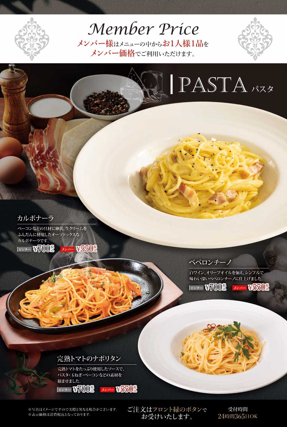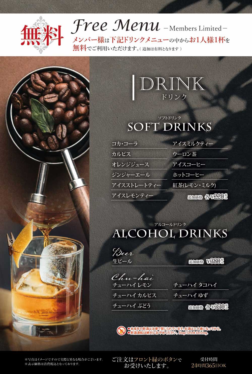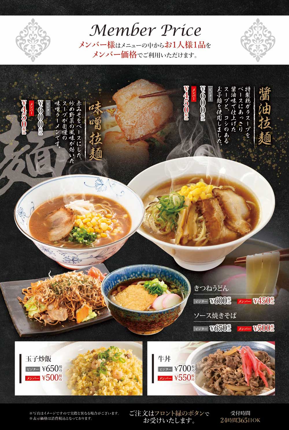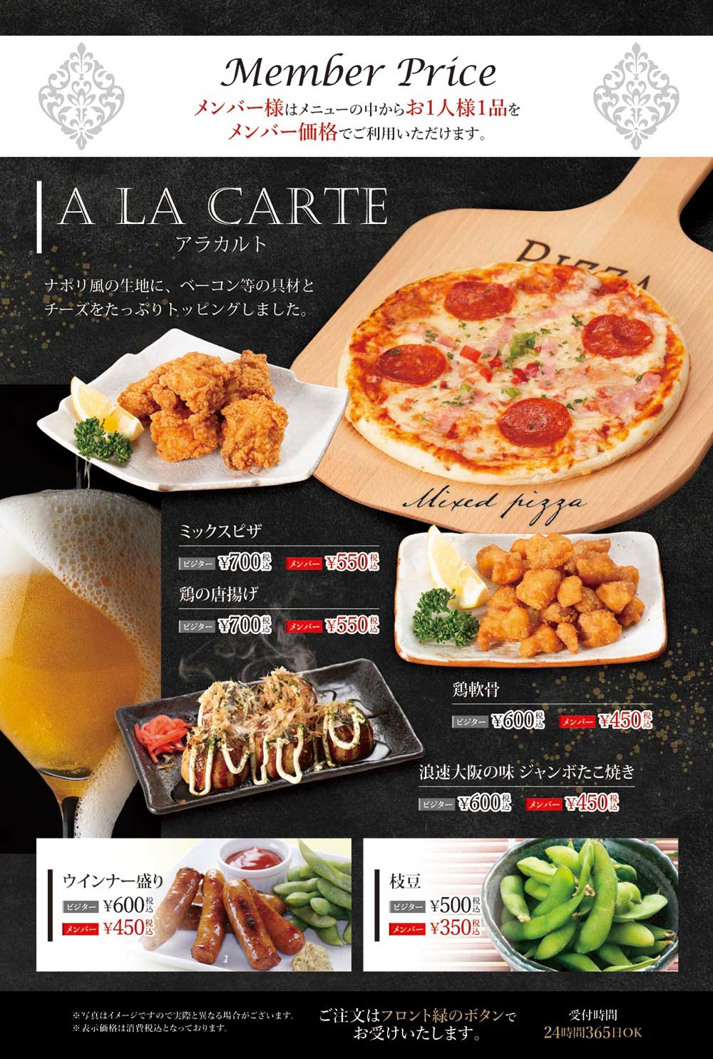 当店自慢のフードメニューをご用意 24時間ご注文OK!! フロント(緑ボタン)で承ります。